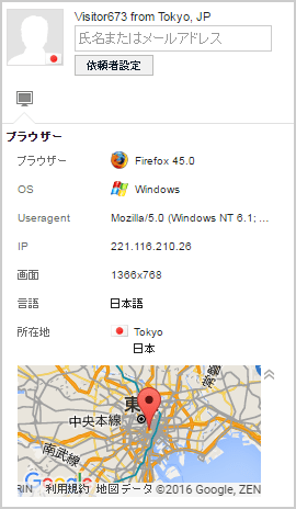 チケット情報画面は基本情報の名前、メールアドレス、オペレーテイングシステムやブラウザーなどから始まり、重要な情報を保管できます。顧客の住所からは地図情報も提供します。